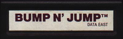 No origin, copyright or date info; larger label, square corners; large bold font for game title; ™ upper right of game title; DATA EAST bottom right; note game title: BUMP N' JUMP |