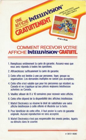Free Lock 'n' Chase Poster offer; appears to have been included with pack-in copies of the game in the French-Canadian market;