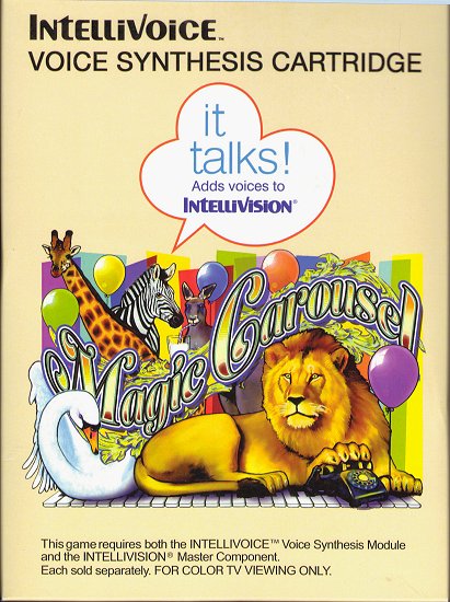 Blue Sky Rangers release of Magic Carousel; uses materials from the prior Intelligentvision / Intellivision Revolution release; in addition to BSR sticker on box face, also on back and left spine; at least one copy is known to have a BSR sticker on its right spine as well |