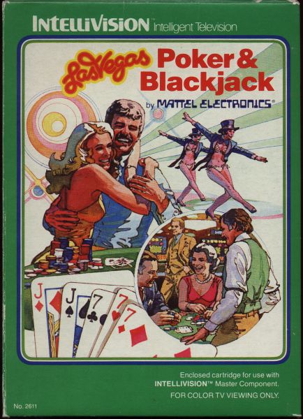 Las Vegas Poker & Blackjack was the original pack-in game for the Intellivision—despite the early boxes touting NFL Football as the pack-in. Later, period, Astrosmash took on that role, with the original 2609. Later, the Intellivision II shipped with Lock 'N' Chase or BurgerTime. Even though everyone has this, it's still a fun game.