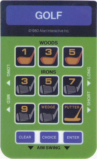Original revision(?): white outline around title, brown woods, grey irons, orange putter; Note: copyright date is 1980 |