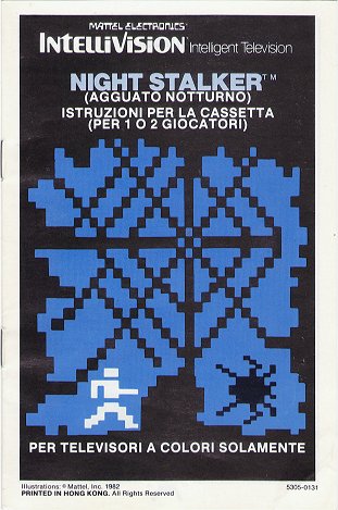 Italian version (AGGUATO NOTTURNO); Erroneously states FOR 1 OR 2 PLAYERS on cover - was there a corrected printing? with Oleggio Castello (NO) on back; special thanks to Intellivotion |
