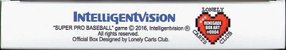 Custom box from Lonely Carts Club great for storing a your fully assembled copy of Super Pro Baseball; box is lined with baseball artwork; has great cartridge and manual retention system as well; Lonely Carts Club log on bottom flap |